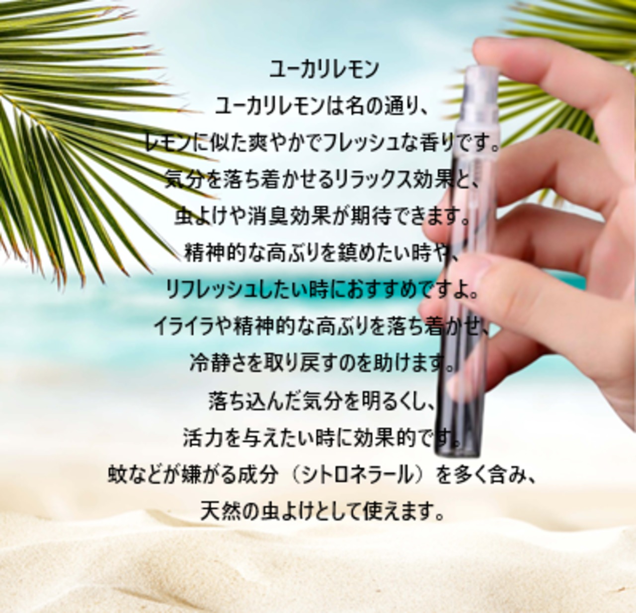ユーカリレモンは名の通り、レモンに似た爽やかでフレッシュな香りです。