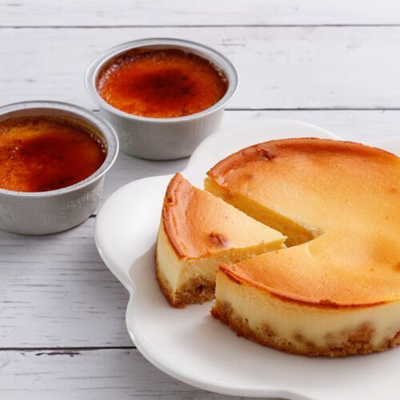 濃厚なチーズの味わいが楽しめるベイクドチーズケーキと表面のキャラメリゼの香ばしさとクリームチーズの風味が楽しめるあいすプリンです。