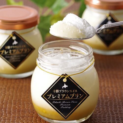 十勝橋本牧場の希少なブラウンスイス牛の生乳使用し、下にカラメル、上にクリームをのせたプレミアムプリン