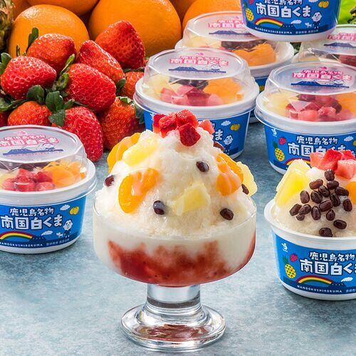 鹿児島の夏の風物詩「氷白熊」をギフトセットで全国のご家庭にお送り致します。「南国白くま」は一般的アイスクリーム類に使用されている乳化剤や安定剤を使用せずに、練乳かき氷に仕上げています。また香料を一切使用せず、練乳をふんだんに使用し、自然な練乳の風味を出しています。
