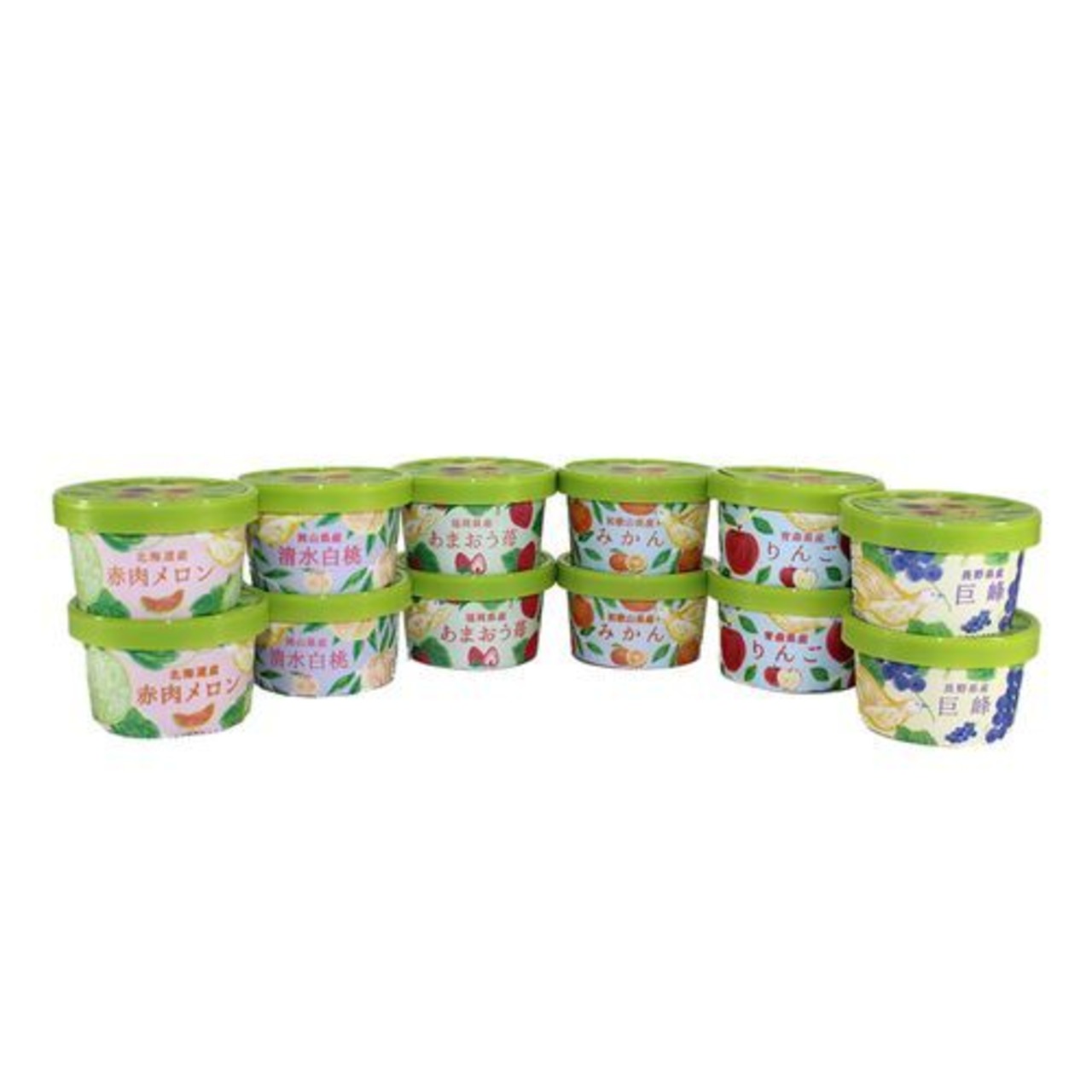 ■規格:福岡あまおう苺アイス、北海道赤肉メロンアイス、岡山清水白桃アイス、青森りんごアイス、長野巨峰アイス、和歌山みかんアイス各70ml×各2(計12個)