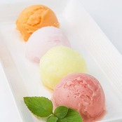 産地自慢の国産果汁を使用してアイスを作りました。「あかい」 「まるい」 「おおきい」 「うまい」と四拍子そろった福岡県産あまおう苺を使ったソルベ。北海道産赤肉メロンの甘味と香り豊かでクリーミーな、メロンジェラート。岡山県産清水白桃の果汁を使い、まろやかな甘味がうれしいソルベ。