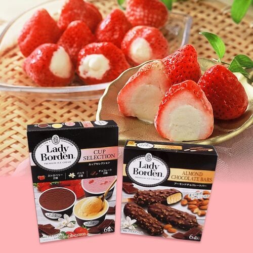 ■規格:レディーボーデン(マルチ アーモンドチョコレートバー(50ml×6)×1、マルチ カップセレクション(バニラ・チョコレート・ストロベリー各75ml×各2入)×1)、苺の宝石箱(苺アイス練乳入り)×18個