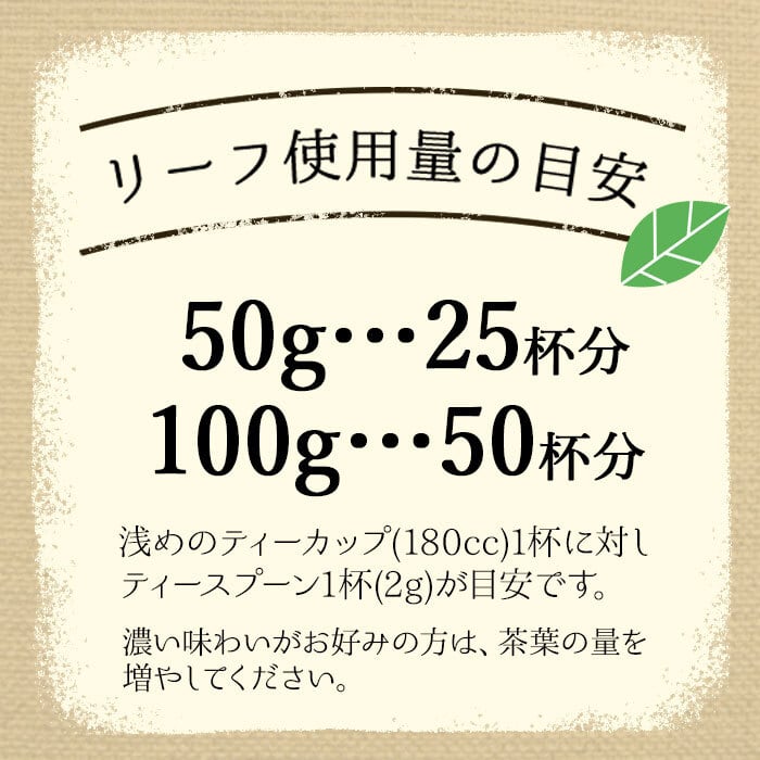 ティーカップ(約120ml程度)1杯に対してティースプーン1杯~1.5杯を目安、