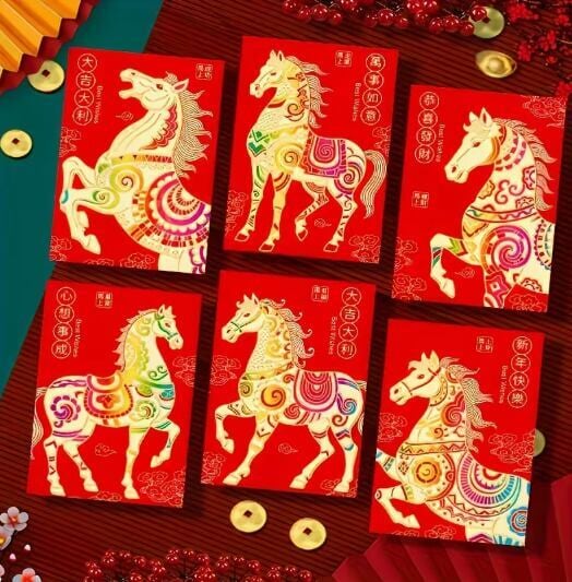 縁起の良い 駆ける馬 赤い封筒 6枚セット