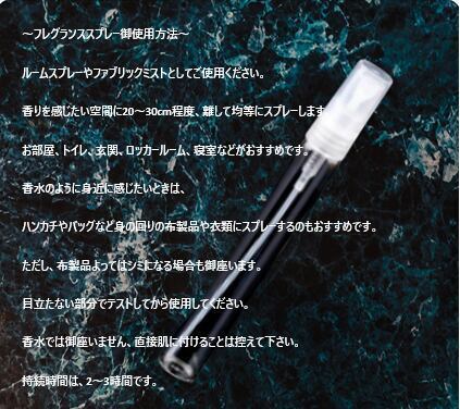 このフレグランススプレーは、日常生活のどんなシーンでもご使用いただけます。ふとした瞬間に穏やかな香りが広がり、リフレッシュした気持ちを感じることができるでしょう。特別な瞬間をより一層引き立てるアイテムとしても重宝します。