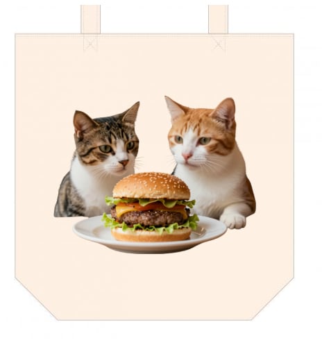 キャンバストート・ハンバーガーとネコ