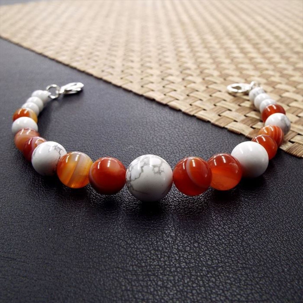 玉サイズ:ハウライトホワイトターコイズ 約12mm・約10mm・約8mm・約6mm サードオニキス 約10mm・約8mm