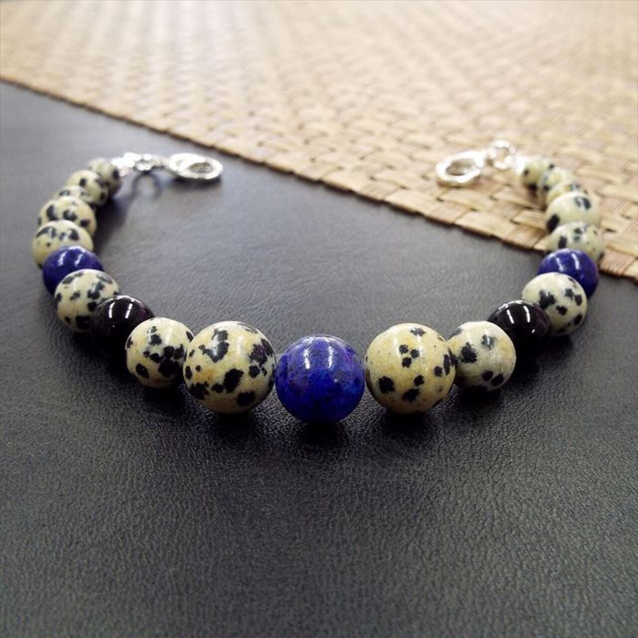 玉サイズ:ラピスラズリ 約10mm オニキス 約8mm ダルメシアンジャスパー 約10mm