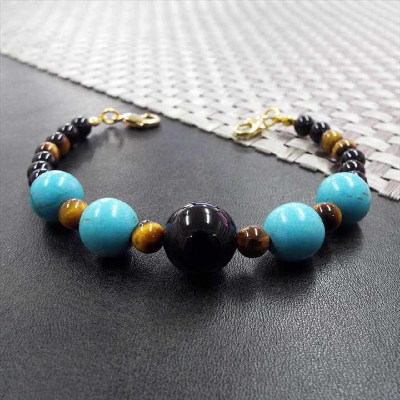 玉サイズ:オニキス 約14mm・約6mm ターコイズ練り 約12mm タイガーアイ 約6mm