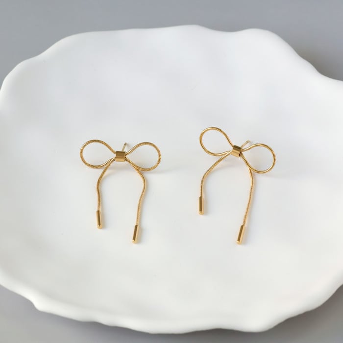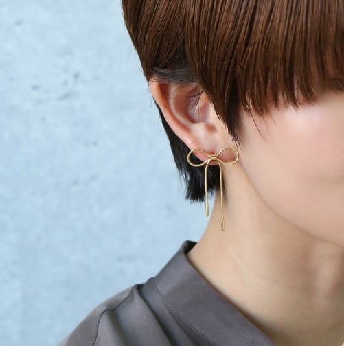 モードな雰囲気のスネークチェーンのリボンピアス。