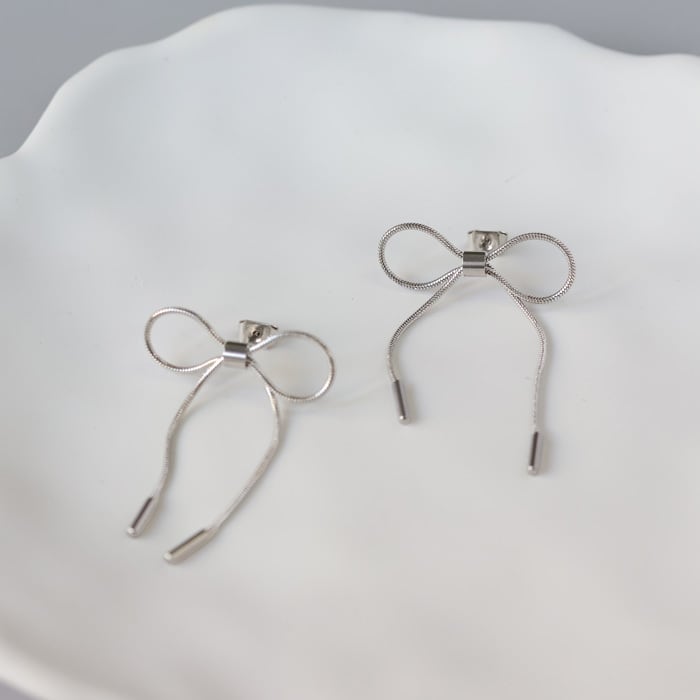 ピアス リボン スネークチェーン 揺れる サージカルステンレス (両耳セット)