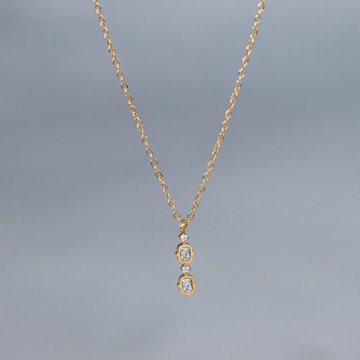 ステンレス ネックレス CZダイヤ 4粒