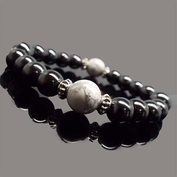 集中力を高める 天然石 ヘマタイト ホワイトターコイズ デザインブレスレット