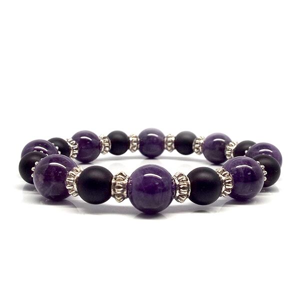 心に神秘のバランスをもたらす 天然石 アメジスト マットオニキス デザインブレスレット