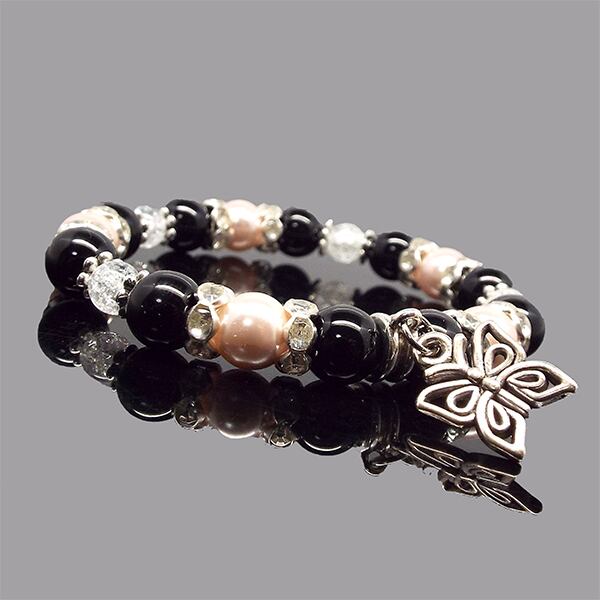 オニキス ピンクシェルパール バタフライ チャーム デザインブレスレット