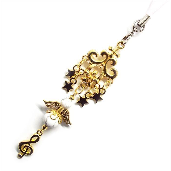 自分らしさを磨く 天然石 ストラップ ホワイト ターコイズ 天使 スター 音符