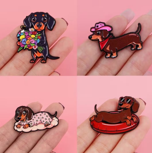 洋服やバッグにサッとつけて、あなたの日常にダックスフンドの可愛さをプラスしましょう。