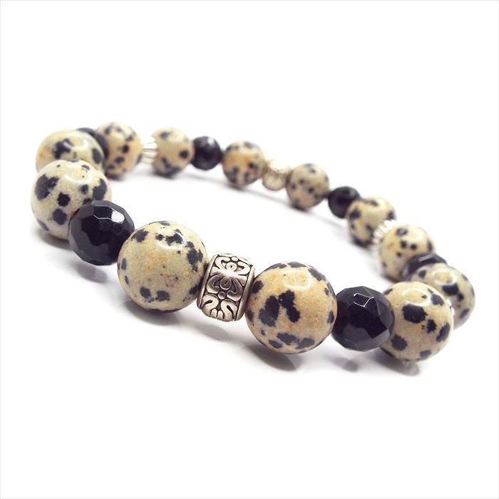 天然石 ダルメシアンジャスパー オニキス パワーストーン ブレスレット「必勝祈願」