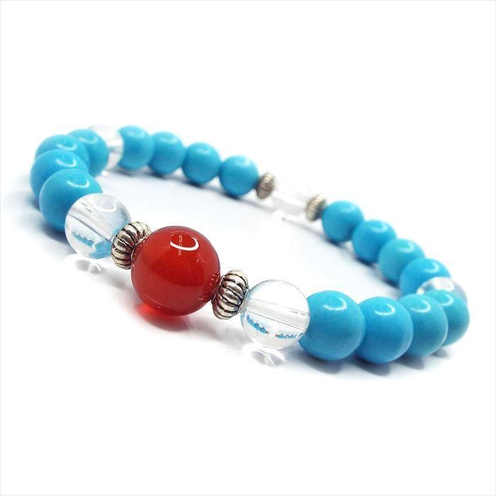 天然石 カーネリアン 水晶 ターコイズ ブレスレット「希望を達成」