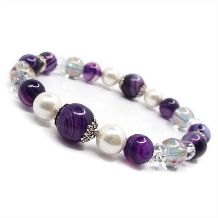 天然石 ブレスレット バンデットアゲート シェルパール オーラ「精神安定」